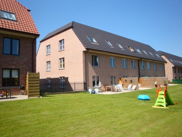 Omgeving | nieuwe verkaveling rond een groen plein met zitbanken. 2 km achterkant station |